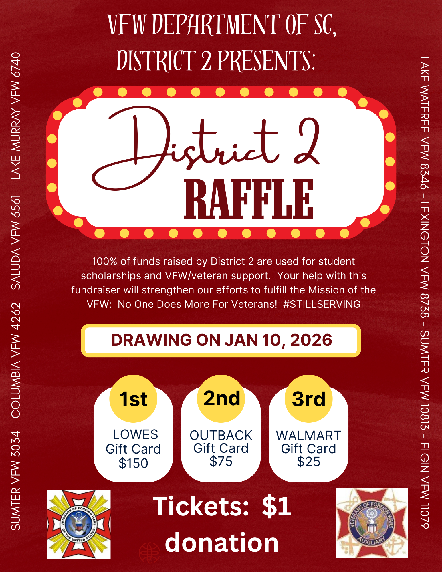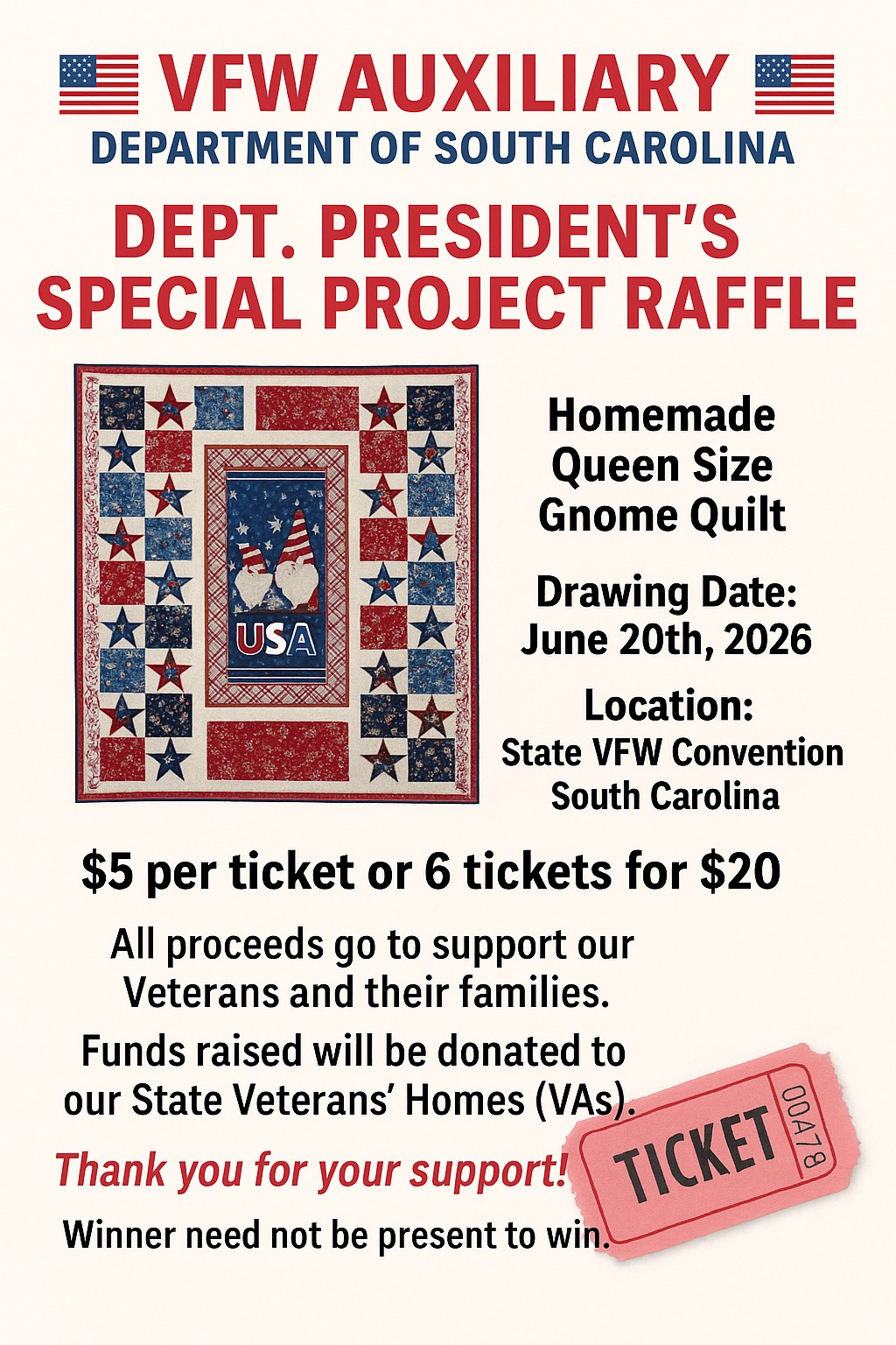 The Department of South Carolina Auxiliary supports the Veterans and Families of South Carolina and every community in which they live work and play. Please enjoy our website and feel encouraged to ask questions or make comments.